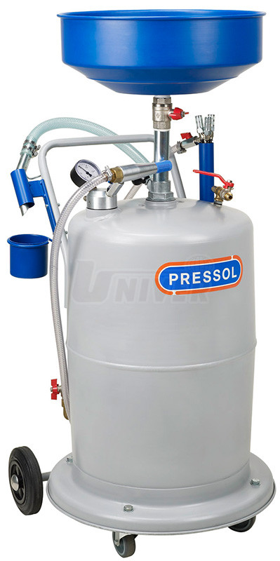 Pojízdná sběrná nádoba na vyjetý olej z vozidel na zvedáku nebo jen volně stojících (případně i pro použití v montážní jámě) renomovaného německého výrobce PRESSOL.Má