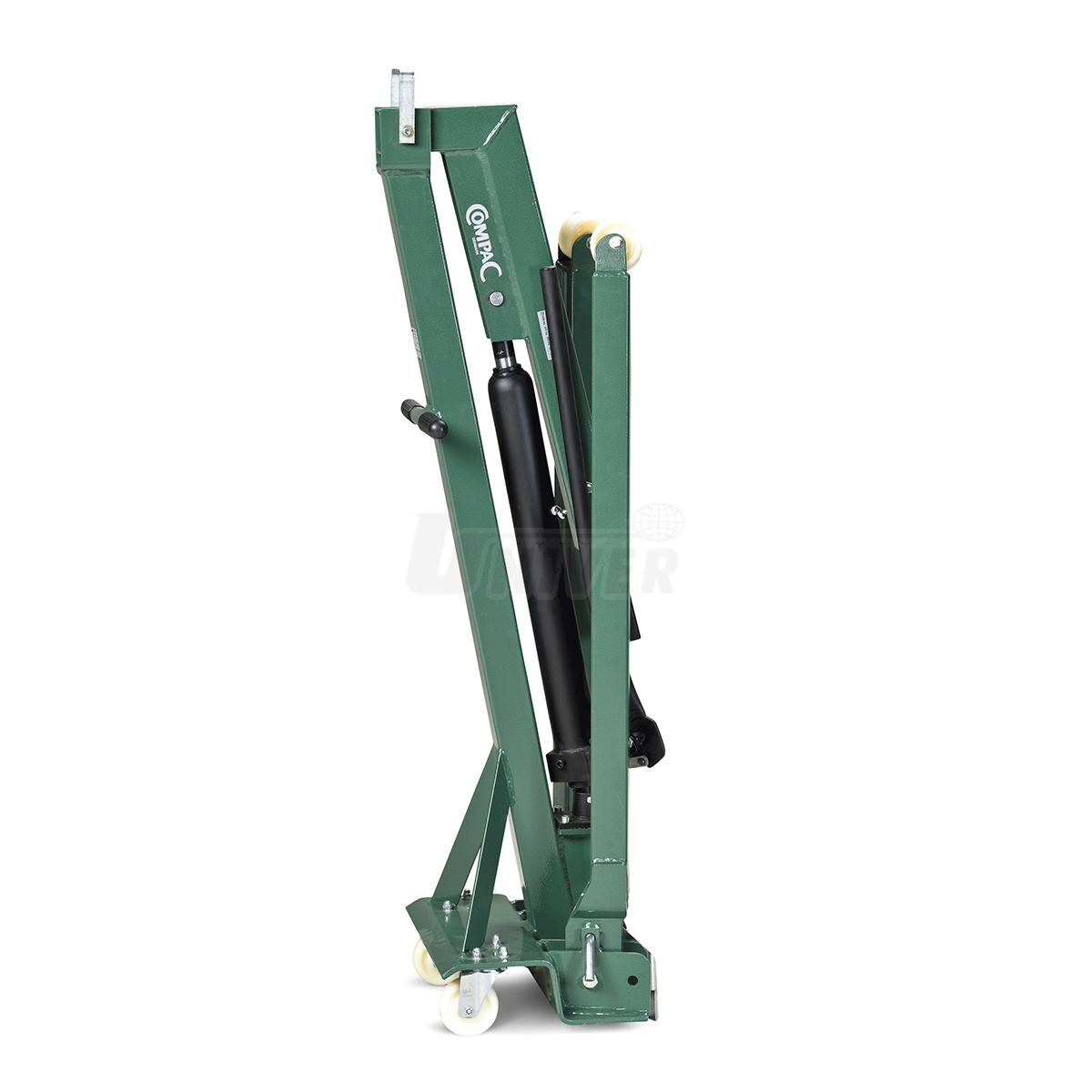 - podvozkové nohy i nosné rameno lze sklopit (složit dohromady), takže jeřábový vozík ve složeném stavu zabírá jen minimální prostor (360 x 420 mm)