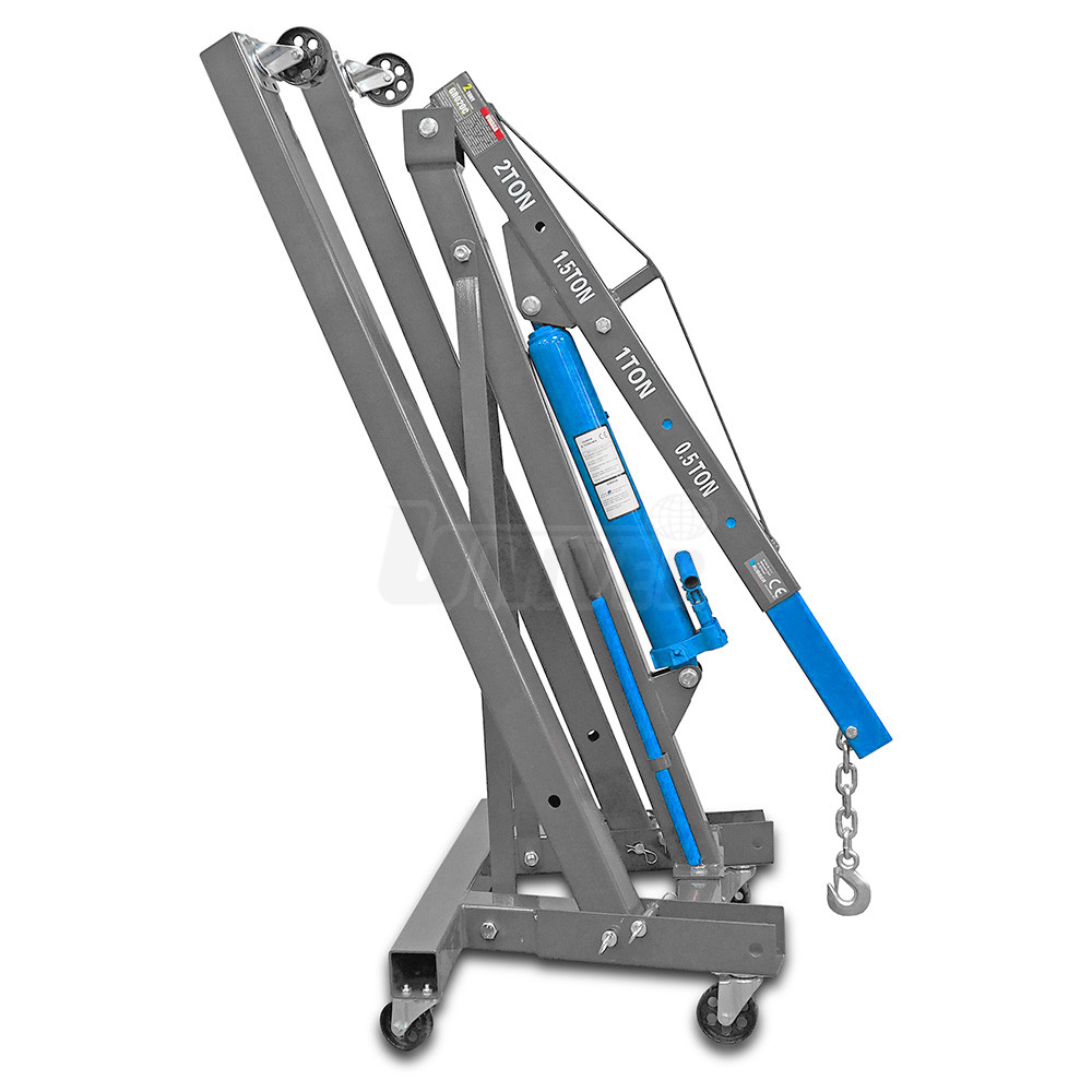 Pojízdný skládací hydraulický dílenský jeřáb ("žirafa") s maximální nosností 2 t