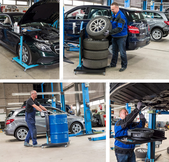 Sklopitelný, výškově nastavitelný pojízdný stůl s nosností stolu 35 kg a s celkovou nosností 150 kg.- velmi praktický, víceúčelový pojízdný stůl se stabilní svařovanou konstrukcí renomovaného německého výrobce