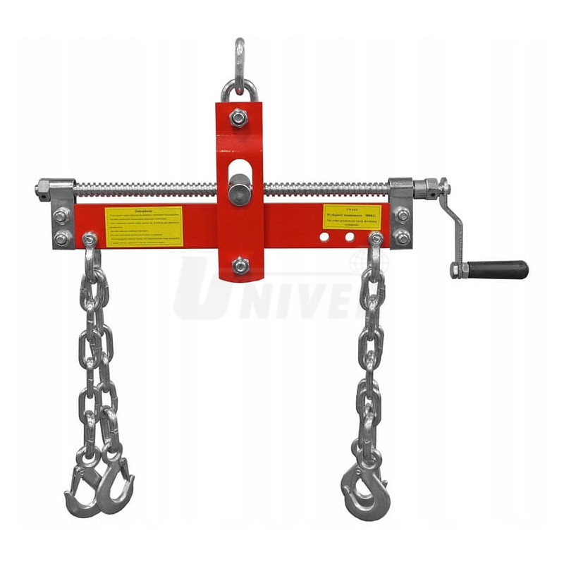 Speciální přípravek o nosnosti 900 kg slouží jako doplněk k pojízdným dílenským jeřábům. Nejčastěji se používá k uchycení demontovaného nebo montovaného motoru.