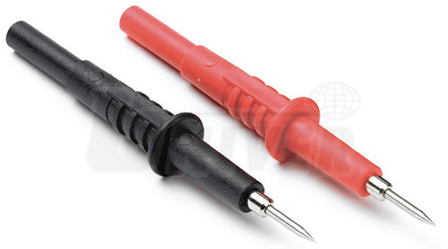 Pružný jehlový zkušební hrot, černý (TA161), červený (TA162), průměr připojovaného pouzdra 4 mm. Umožňují proniknout pod izolaci vícekolíkových konektorů a měřit signály bez porušení izolace kabelů nebo bez rozpojení konektoru.