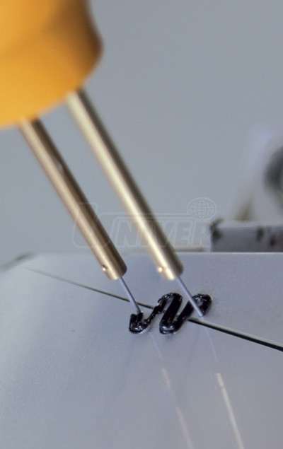 Přístroj pro snadné a stabilní opravy prasklin plastů představuje technologii, která má všestranné použití při opravách prasklin plastů nejenom v autoservisech, v autokarosárnách a v autolakovnách.- přístroj má držák se dvěma trubičkami pro nasazení sponky příslušného tvaru prostým zastrčením a to buď shora nebo i z boku. Po stisknutí tlačítka držáku se sponka přiložená přes prasklinu na rubové straně plastového dílu velmi rychle ohřívá až na 200°C a během několika sekund se začne ponořovat do nataveného plastu. Podle tloušťky plastu se takto zataví milimetr i více do plastu a jakmile je tohoto stavu dosaženo, žhavení se vypne. Opět se několik málo sekund počká až natavený plast kolem sponky vytvrdne, držák se od sponky oddělí a sponka zůstává zatavená v plastu.