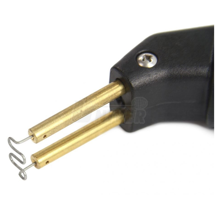 - do držáku přístroje se zasune sponka příslušného tvaru, po stisknutí tlačítka na držáku se rozsvítí LED světlo, osvítí opravované místo, sponka přiložená přes prasklinu na rubové straně plastového dílu se velmi rychle ohřívá a během několika sekund se začne ponořovat do nataveného plastu, podle tloušťky plastu se takto zataví milimetr i více do plastu a jakmile je tohoto stavu dosaženo, žhavení se vypne, opět se několik málo sekund počká až natavený plast kolem sponky vytvrdne, držák se od sponky oddělí a sponka zůstává zatavená v plastu