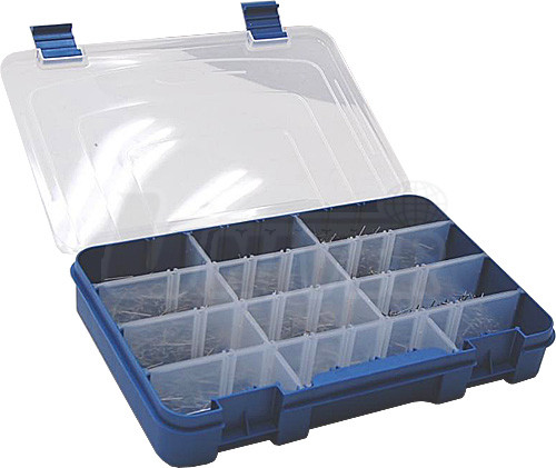sada 9 různých sponek (310500, 13105002, 3105003, 3105004, 3105005, 3105006, 3105007, 3105008, 3105009) vždy po 100 kusech (celkem 9x100 ks) v plastové krabici