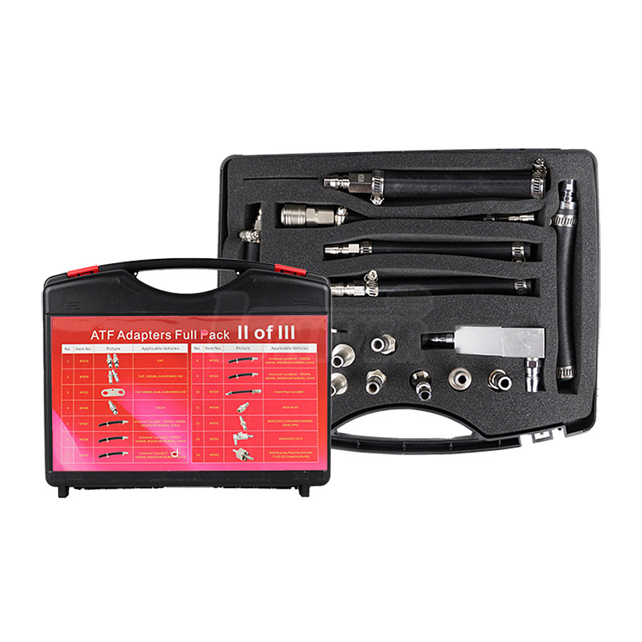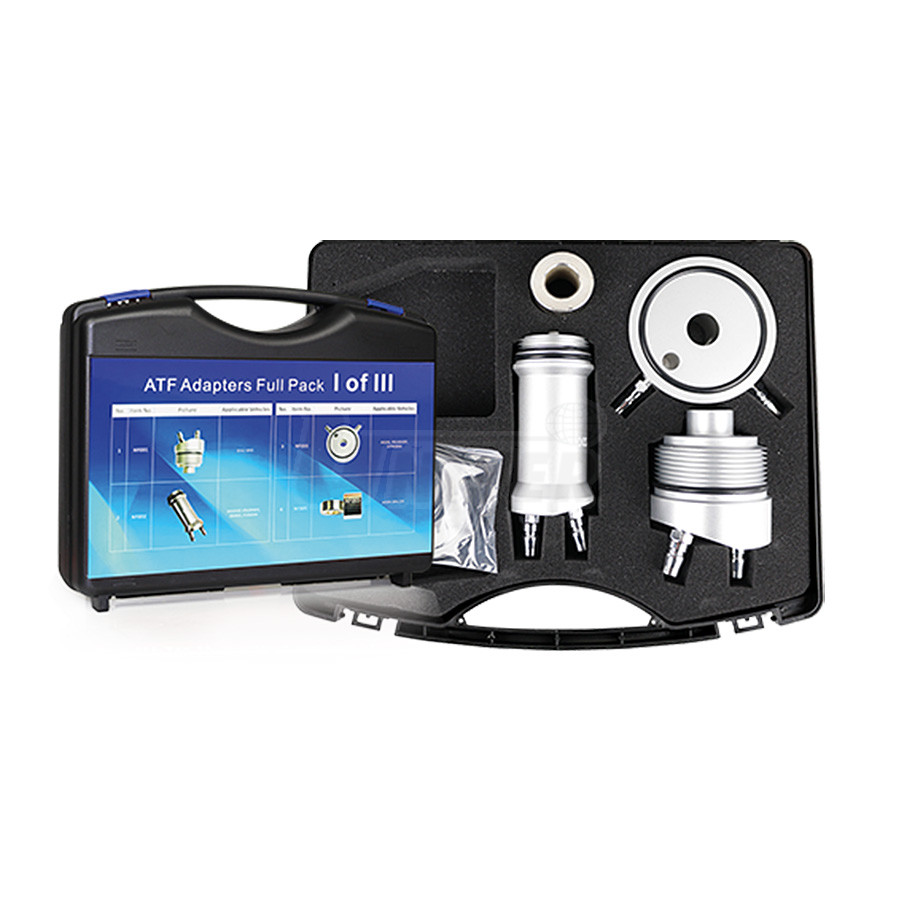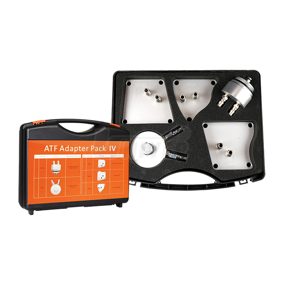 AC-CAT-ATF-KIT-2 – ATF Adapter European Pack 2, sada adaptérů NF019 (Fiat), NF020 (Dodge Journey), NF021 (Fiat Croma, Alfa Romeo 159), NF 026 (Volvo), NF023 (univerzální Ø 14 mm, Toyota, Honda, Nissan, Mitsubishi, Lexus), NF024 (univerzální Ø 16 mm, Toyota, Honda, Nissan, Mitsubishi, Lexus), NF025 (univerzální Ø 16 mm, Toyota, Honda, Nissan, Mitsubishi, Lexus), NF022 (univerzální Ø 12 mm, Toyota, Honda, Nissan, Mitsubishi, Lexus), NF027 (univerzální Ø 8 mm, Toyota, Honda, Nissan, Mitsubishi, Lexus), NF028 (univerzální Ø 10 mm, Toyota, Honda, Nissan, Mitsubishi, Lexus), NF029 (propojovací Ø 8 mm), NF030 (Audi A4, A5), NF031 (Mercedes-Benz třída A a B, Hummer, Saab, Opel), NF032 (Mercedes-Benz 722.9), NF033 (VAG – Touareg, Phaeton, Amarok, T5, Q5, Q7, Cayenne, A8)