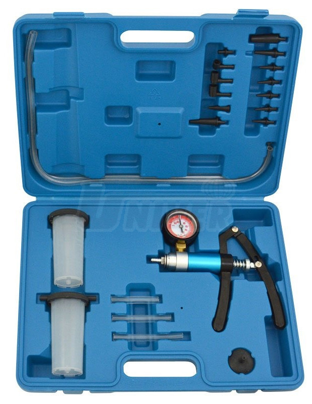 Ruční přístroj pro vytváření tlaku a podtlaku při zkoušení součástí automobilů, ale i pro výměnu brzdové kapaliny.- tlakoměr (pro tlak 0-3 bar a podtlak -0,7 až 0 bar)