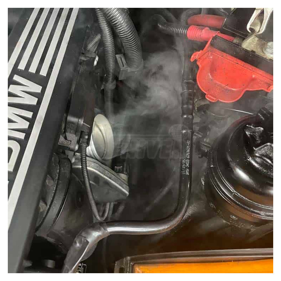 Detektor úniku kouře pro rychlé zjišťování míst netěsností potrubí, hadic, klikových skříní motoru, sacího a výfukového systému motorů, systému EVAP, systémů chlazení / EGR / palivových nádrží atd.- přístroj se naplní z nádobky s testovacím kouřovým olejem (250 ml, vystačí na cca 1 000 testů, lze použít i minerální olej USP nebo NF, lékařský / dětský olej) dodávané s přístrojem, odpojí se potrubí / hadička apod., které se mají testovat, přístroj napojený na 12 V produkuje kouř, který pomocí vestavěného čerpadla (není třeba používat externí čerpadlo) naplní potrubí a za pár minut už lze na základě úniku kouře zjistit místo netěsnosti