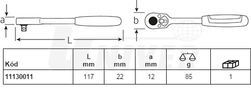 Ráčna na bity s vnitřním šestihranem 1/4" a s prstencovou přítlačnou pružinou, 22 zubů.