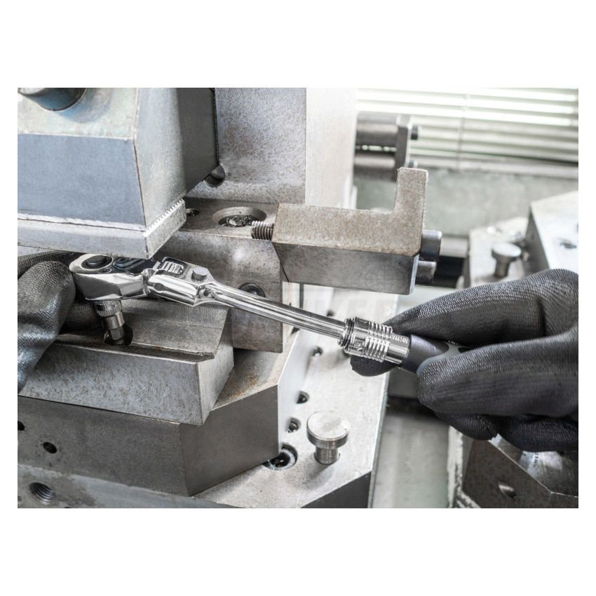 Přepínací kloubová výsuvná ráčna 1/4" s hlavou otočnou o 180°, s aretací.- jemné ozubení (90 zubů / 4°)