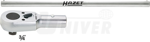 Ráčna s přepínací páčkou (hlavice s tyčkou) je vyrobena z vysoce kvalitního chrom-vanadia. Hlavice ráčny se čtvercovým vývodem 3/4", 32 zubů, je doplněna ovládací tyčkou. Oba díly mají pochromovaný povrch. Délka 620 mm. Splňuje požadavky DIN 3122 a ISO 3315.