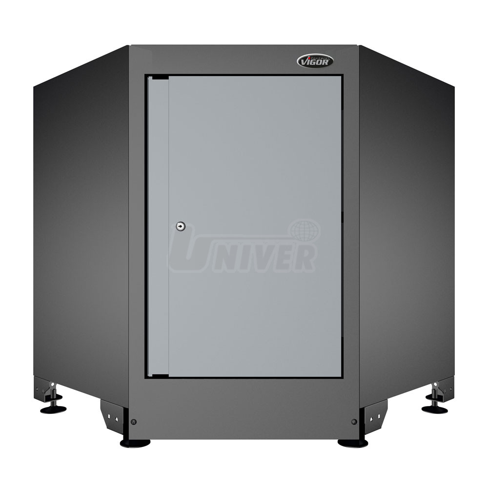 Celokovová dílenská skříň s jednokřídlovými dveřmi k rozšíření skříňové stěny VIGOR v rohu.- univerzální použití pro uložení nářadí, nástrojů, materiálu, vybraných součástek, dokumentace atd.
