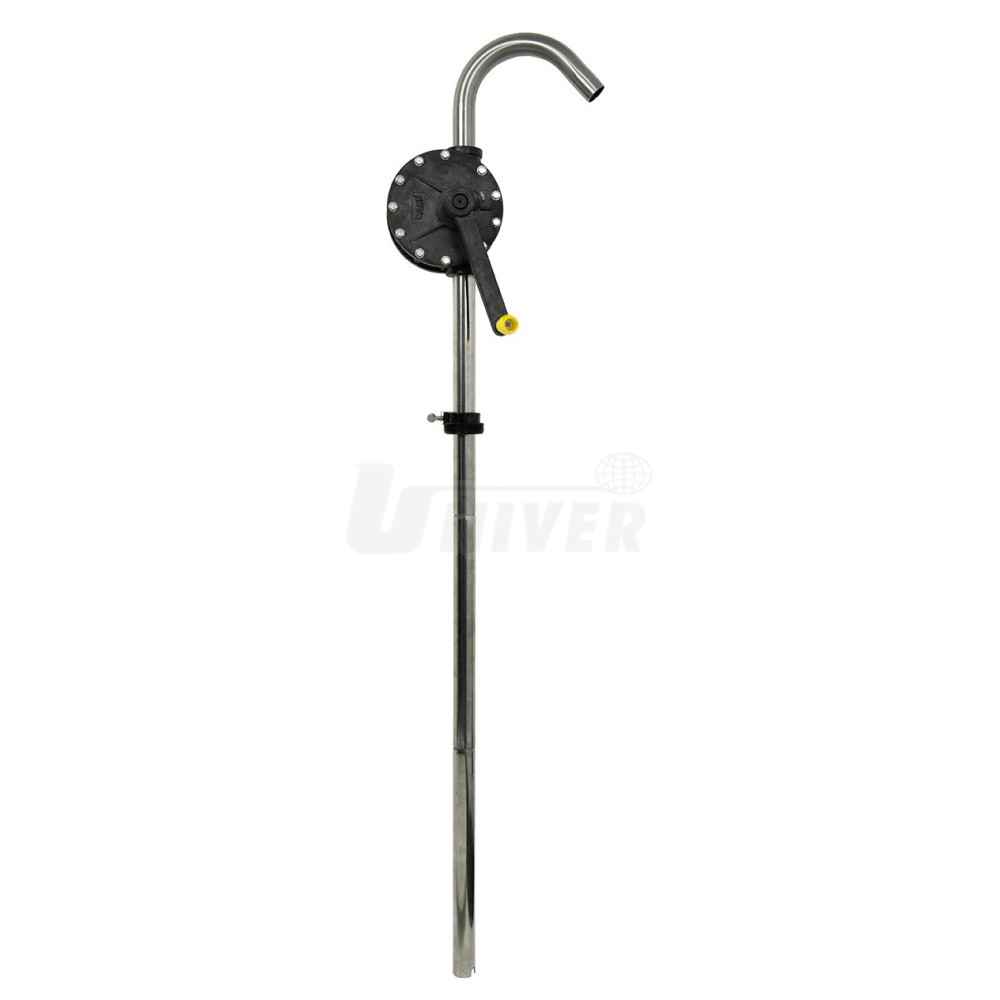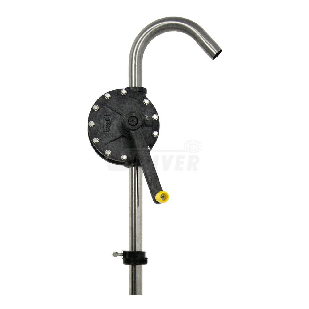 Ruční rotační sudové čerpadlo s klikou a výtokovou hubicí pro čerpání silnějších kyselin, zásad, benzínu, nafty, strojního oleje, alkoholů, ředidel, vody, chemikálií na vodní bázi a mnoho agresivnějších chemických kapalin ze sudů 60 l/ 110 l / 210 l.- ruční rotační nerezové čerpadlo s vyšším průtokem nalézá široké uplatnění pro čerpání silnějších kyselin, zásad, benzínu, nafty, strojního oleje, alkoholů, ředidel, vody, chemikálií na vodní bázi a mnoho agresivnějších chemických kapalin ze sudů 60 l/ 110 l / 210 l