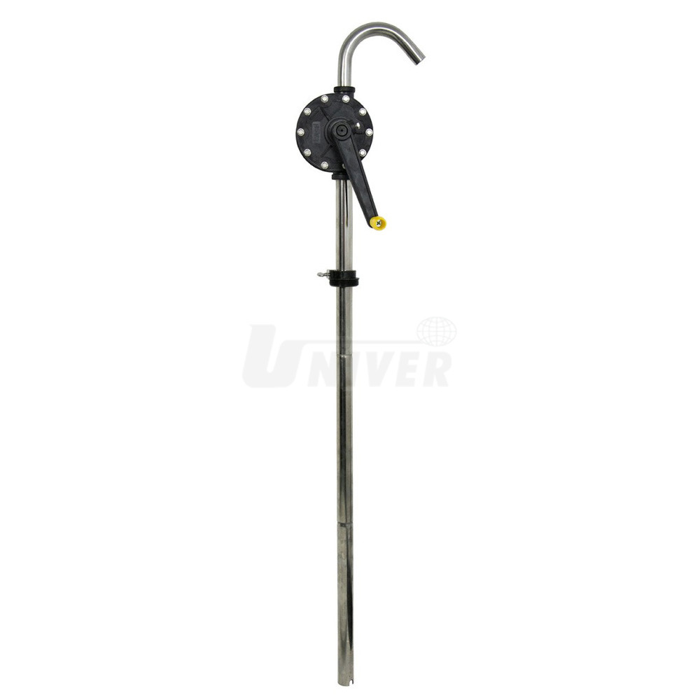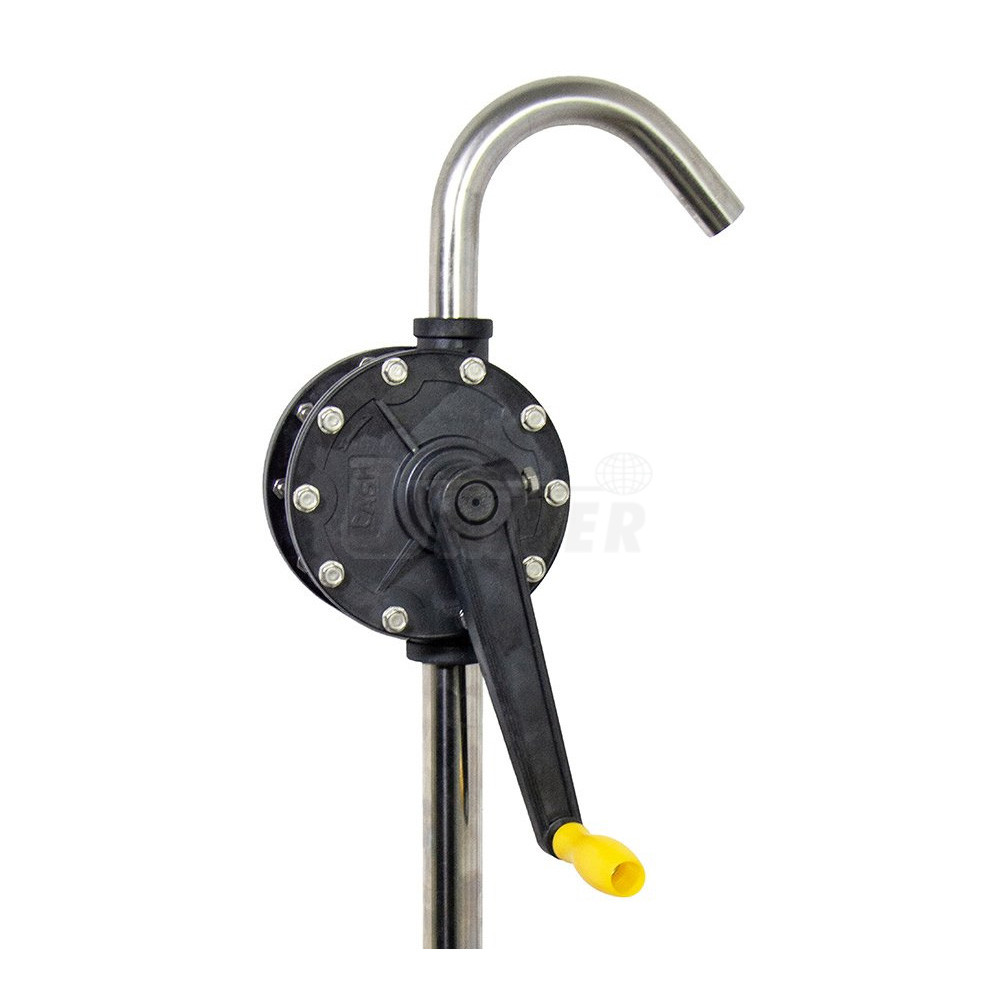 Ruční rotační sudové čerpadlo s klikou a výtokovou hubicí pro čerpání benzínu, nafty, strojního oleje, kyselin, zásad, alkoholů, ředidel, vody a chemikálií na vodní bázi. ze sudů 60 l/ 110 l / 210 l.