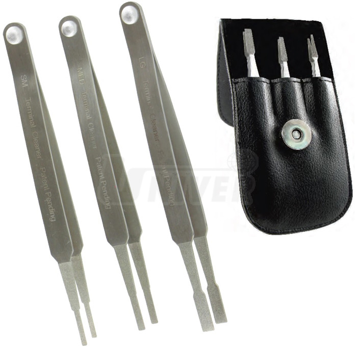 Sada (3-dílná) diamantových přípravků pro čištění samčích i samičích kontaktů plochých konektorů.- bezpečné čištění a zlepšení funkce konektorů