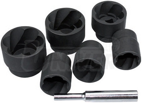 Sada hlavic 1/2" se spirálově uspořádanými drážkami pro povolování osmekaných matic (s protočenou hlavou) v plastovém kufříku.Obsahuje: