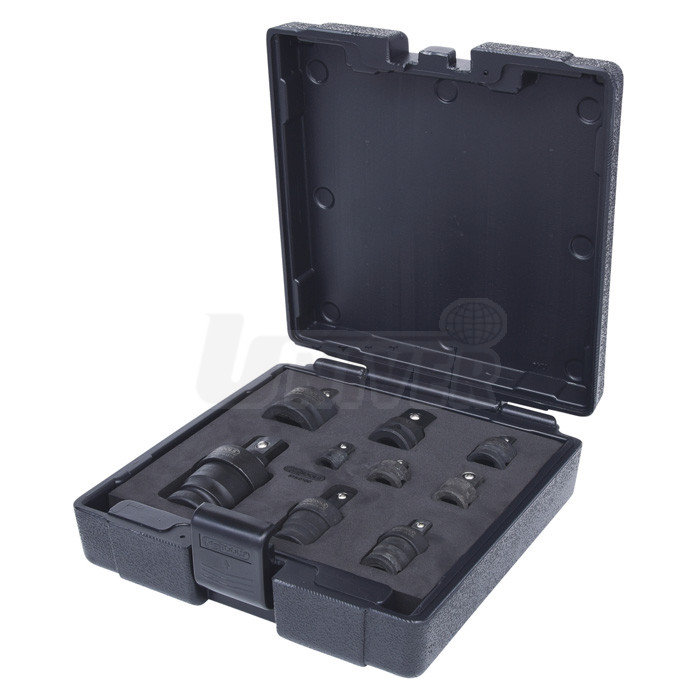 9-dílná sada speciálních kovaných adaptérů / redukcí různých rozměrů (čtyřhrany 1/4", 3/8" a 1/2").- 9-dílná sada různých kovaných adaptérů / redukcí se čtyřhrany 1/4", 3/8" a 1/2"