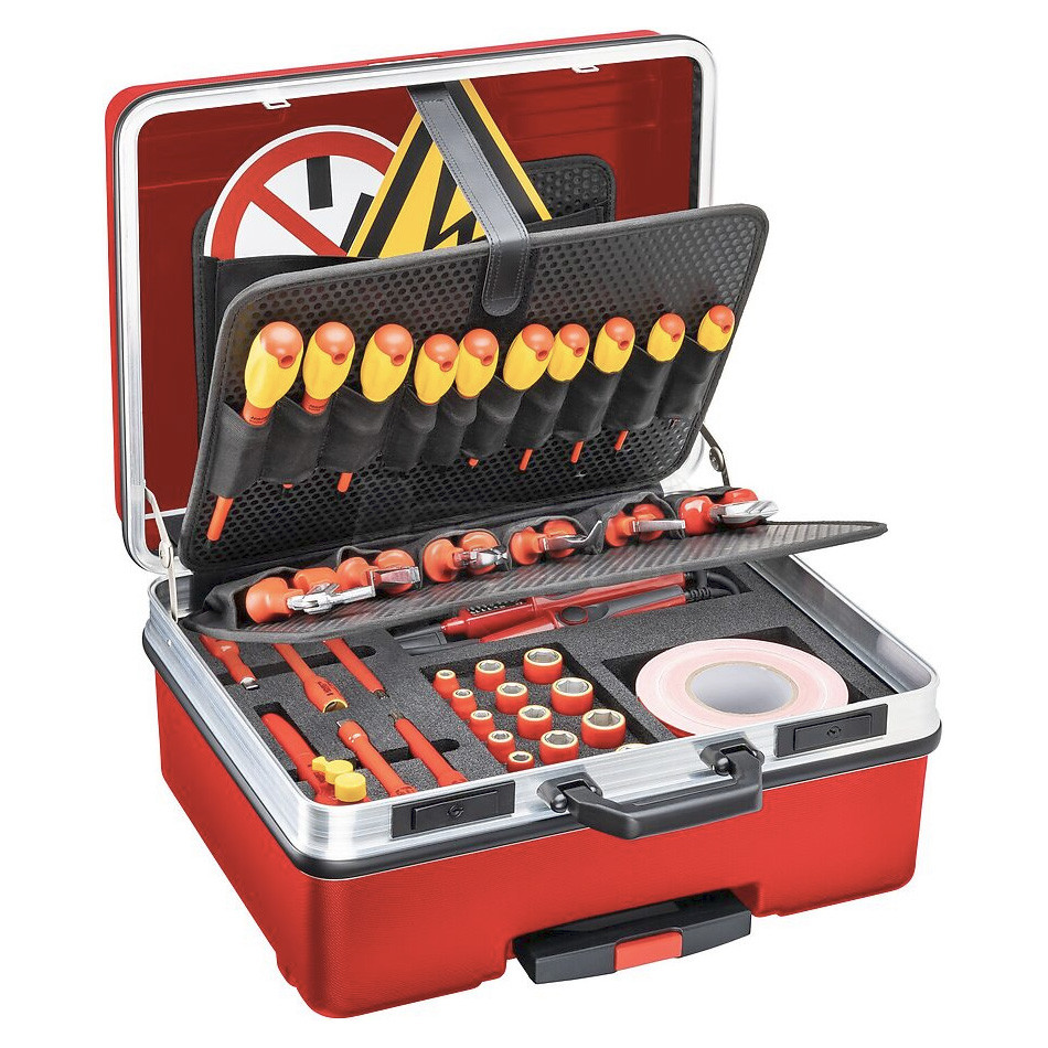 52-dílná sada nářadí 3/8" s VDE izolací (do 1000 V) v pojízdném kufru pro veškeré práce na vysokonapěťových systémech.- izolované nářadí v souladu s normou IEC 60900:2018 / ČSN EN IEC 60900 ED.4 (359704)