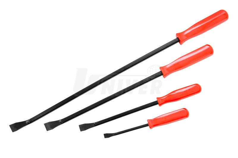 Sada obsahuje 4 ocelová páčidla s komfortní plastovou rukojetí a kovovou částí s koncovým zploštělým vyhnutím s pryžovou krytkou. Na výrobu nástrojů se používá vysoce kvalitní, mechanicky odolný materiál.Rozměry páčidel (délka x šířka):