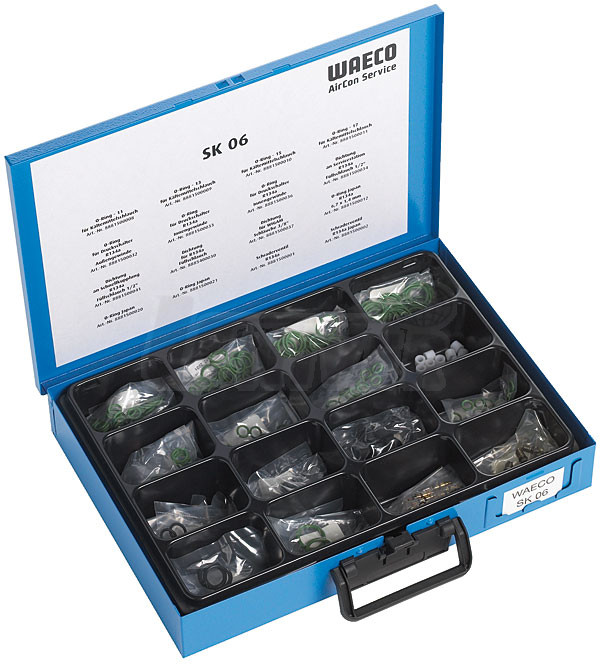 Sada obsahuje náhradní O-kroužky pro opravy klimatizací osobních automobilů s chladivem R134a, do kterých byla klimatizace dodatečně namontována. Sada byla vysestavena přesně dle požadavků servisních dílen zabývajících se dodatkovou montáží klimatizací. Obsahuje následující O-kroužky:8881500001 - 10 ks ventil R134a ()