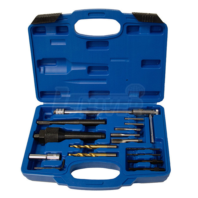 15-dílná sada přípravků na demontáž prasklých nebo jinak poškozených žhavicích svíček se závitem M8 x 1,0 mm a M10 x 1,0 mm.- sada přípravků na demontáž prasklých nebo jinak poškozených žhavicích svíček M8 a M10 obsahuje vše potřebné, aby bylo možné vymontovat i silně zapečenou a různě poškozenou žhavicí svíčku, aniž byl nějak narušen mechanický stav motoru nebo stav závitu pro žhavicí svíčku.