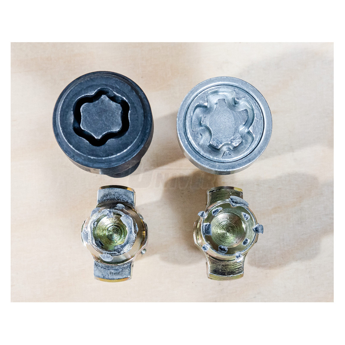 - tvarované klíče na bezpečnostní šrouby kol se úderem kladiva přizpůsobí profilu