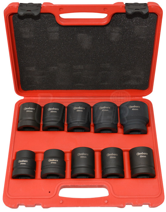 Sada kvalitních šestihranných kovaných hlavic 1" (10 ks 24-46 mm) krátkých z chrom-molybdenové speciální oceli uložených v plastovém kufru.- materiál: kovaná, vysoce kvalitní chrom-molybdenová ocel