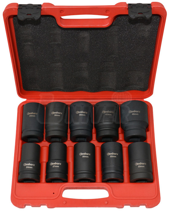 Sada kvalitních šestihranných kovaných hlavic 1" (10 ks 24-46 mm) prodloužených z chrom-molybdenové speciální oceli uložených v plastovém kufru.- materiál: kovaná, vysoce kvalitní chrom-molybdenová ocel