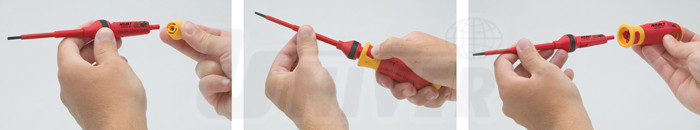 - šroubováky jsou jednotlivě zkoušené ve vodní lázni se zkušebním napětím 10 000 V