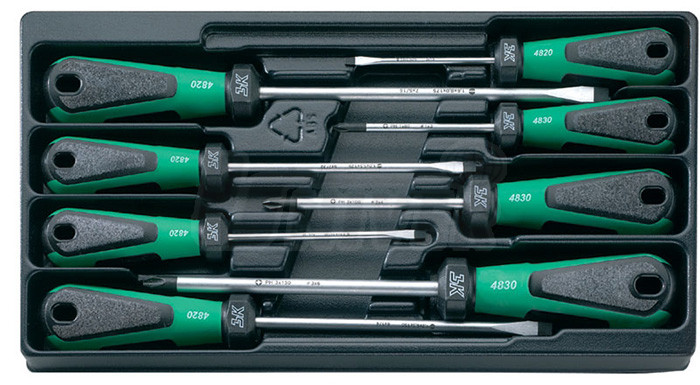 8-dílná sada plochých a křížových šroubováků s kulatým průřezem v rukojeti.- nejvyšší kvalita garantovaná renomovanou značkou Stahlwille, vyrobeno v Německu
