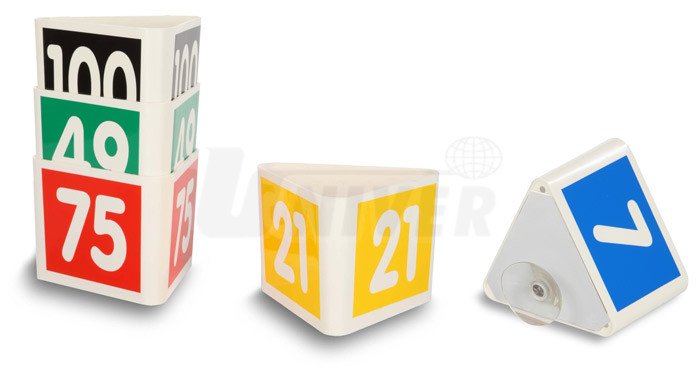 - trojúhelníkové nosiče číselného označení mají z jakéhokoliv úhlu pohledu dobře viditelná čísla na všech třech bočních stranách
