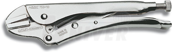 Skřipcové / přidržovací kleště z vysoce kvalitní poniklované oceli. Přímé čelisti kleští bezpečně podrží materiál a jsou vhodné pro vysoké zatížení. Umožňují ovládání jednou rukou. Kleště se seřizovacím šroubem a převodovým mechanismem s lomenou pákou zaručují vysoký upínací tlak. Tělo kleští se skládá z vysoce pevnostní pružinové oceli a nasazených čelistí ze zápustkově kované chrom-vanadiové oceli. Rozevření čelistí 35 mm, délka kleští 250 mm.