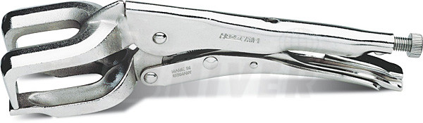 Skřipcové/přidržovací kleště pro svařování z vysoce kvalitní poniklované oceli. Čelisti kleští tvaru zdvojeného "L" bezpečně podrží materiál a jsou vhodné pro vysoké zatížení. Umožňují ovládání jednou rukou. Kleště se seřizovacím šroubem a převodovým mechanismem s lomenou pákou zaručují vysoký upínací tlak. Tělo kleští se skládá z vysoce pevnostní pružinové oceli a nasazených čelistí ze zápustkově kované chrom-vanadiové oceli. Rozevření čelistí 51mm (kulatina 35-60 mm), délka kleští 280 mm.