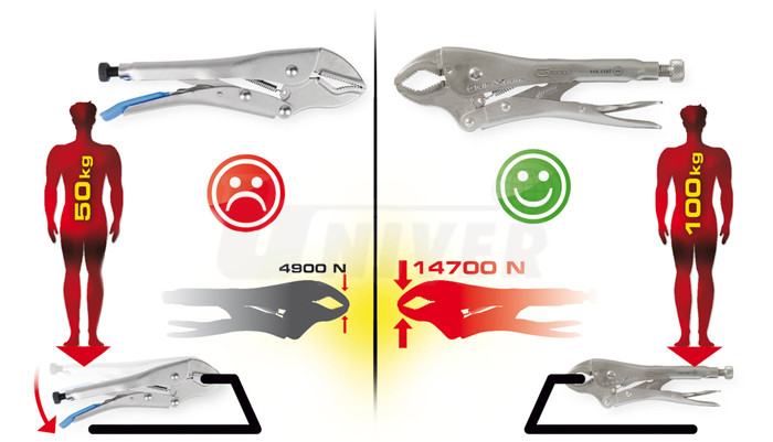 Skřipcové / přidržovací kleště s kovanými čelistmi do čtverce ve 2 různých velikostech se používají zejména při svařování apod.- 2 velikosti univerzálních skřipcových / přidržovacích kleští dl. 175 a 220 mm