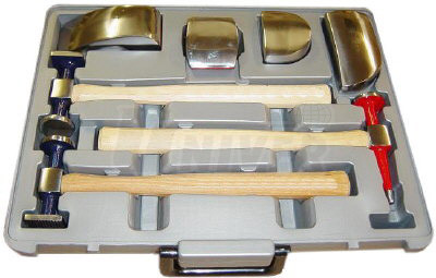 7-dílna souprava autokarosářského nářadí s vysokou mechanickou odolností (HD) umístěného v plastovém kufříku.- kladiva mají ergonomické násady Hickory pro vysoké namáhání