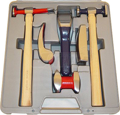 6-dílná souprava autokarosářského nářadí v plastovém kufříku. Obsahuje následující nářadí v provedení s vysokou mechanickou odolností (HD):- autokarosářské kladivo s kulatou a čtvercovou ploškou,