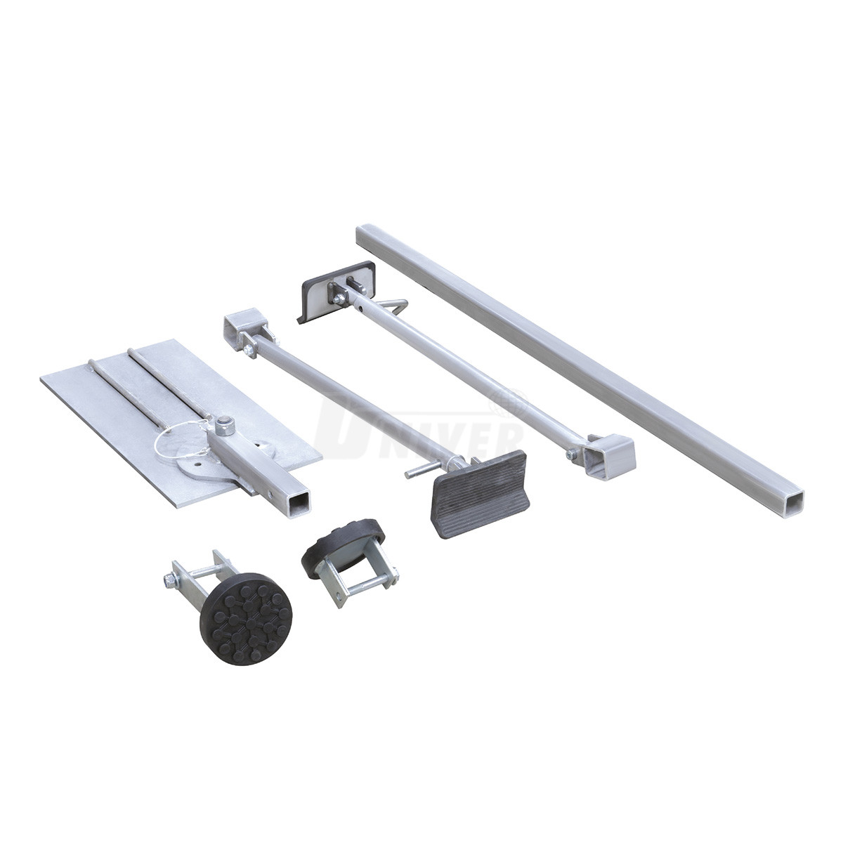 hydraulické rameno / dozer s nastavitelným tažným ramenem a se spodní částí opatřenou 2 kolečky, hydraulickou pumpu se spojovací vysokotlakou hadicí, řetěz, 6-drapákový vytahovací přípravek, podpěrnou desku pod kola, element pro osazení prahu dveří, nástavec pro osazení prahu dveří a příčný nosník pro stabilizaci