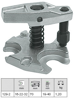Stahováky kulových čepů osobních automobilů (na spojovacích/řídících tyčích, na pákách řízení, na zavěšeních kol, na stabilizátorech apod.) pákového provedení se speciálním pevnostním šroubem.
