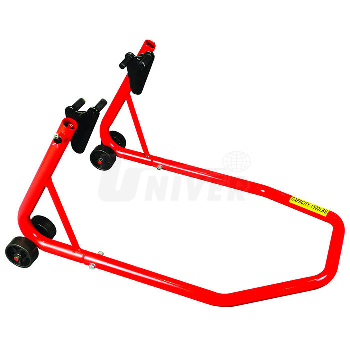 Podpěrný stojan a pákový zvedák pro bezpečné zvednutí zadního kola motocyklu a pojezd.- praktický stojan a zároveň zvedák vhodný pro většinu běžných motocyklů