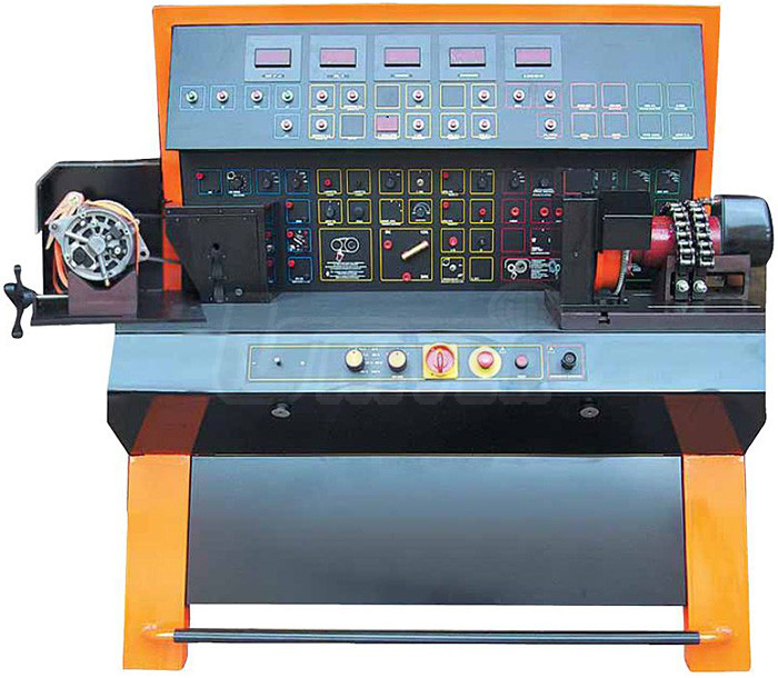 - zkoušení/diagnostika alternátorů a dynam 12 V a 24 V do výkonu 3500 W pomocí zátěžového testu/reostat (850 W/14 V) s využitím zesílené platformy, "V" prisma a upínacího řetězu