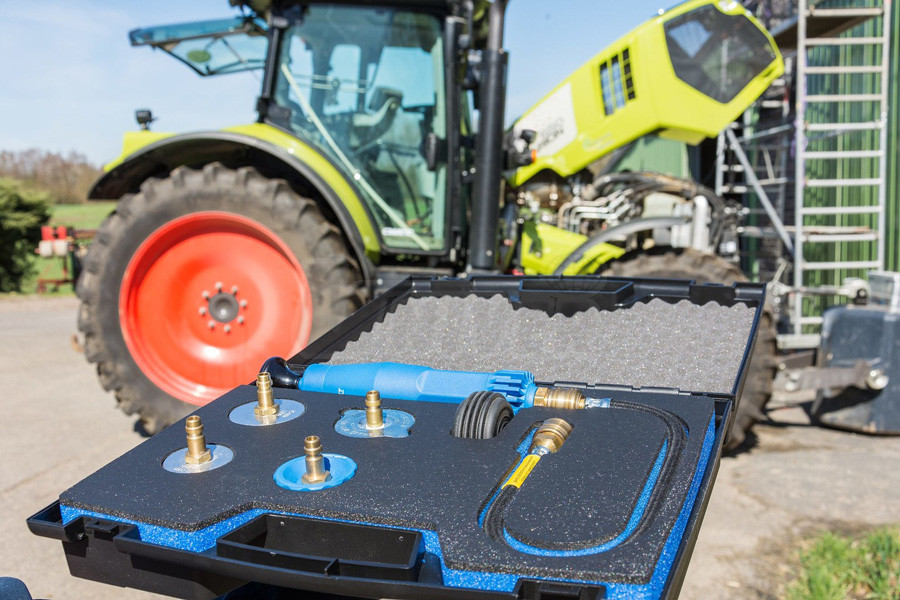 Tester chladicích systémů zemědělských strojů (traktorů, kombajnů atd.) je v provedení 6-dílné sady tvořené tlakovou pumpou s tlakoměrem, adaptéry a pružnou hadicí, vše uložené v plastovém kufříku.- tester chladicích systémů zemědělských strojů (traktorů, kombajnů atd.) s tlakovou pumpou s tlakoměrem, s pružnou připojovací hadicí a se 4 adaptéry