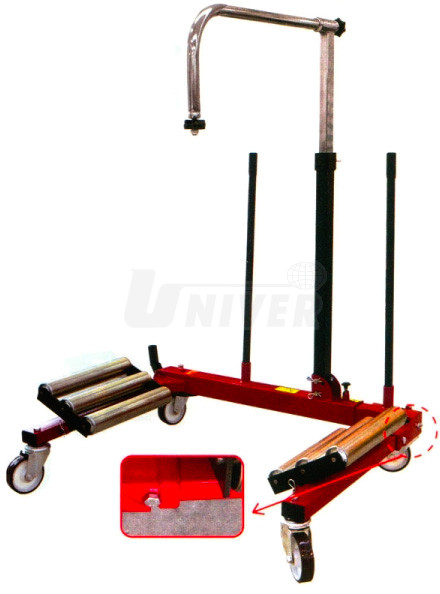Transportní a montážní zvedák pro kola zemědělských a stavebních strojů se používá pro snadnou a bezpečnou montáž, demontáž a převážení extrémně velkých kol zejména zemědělských a stavebních strojů v rozsahu průměrů kol od 1000 mm až do 2200 mm a šířky kol až do 800 mm.Jedná se o speciální zvedák s podvozkovou částí se 4 natáčecími kolečky (dvě mají brzdy), s na obou stranách šířkově a hloubkově nastavitelnými nosnými rameny opatřenými vždy 4 válečky pro snadný nájezd a natočení přepravovaného kola do požadované pozice. Silné, nastavitelné opěrné rameno drží kolo ve svislé poloze a pojíždění s ním je bezpečné. Konstrukce zvedáku umožňuje snadný přístup ke kolovým šroubům/maticím.