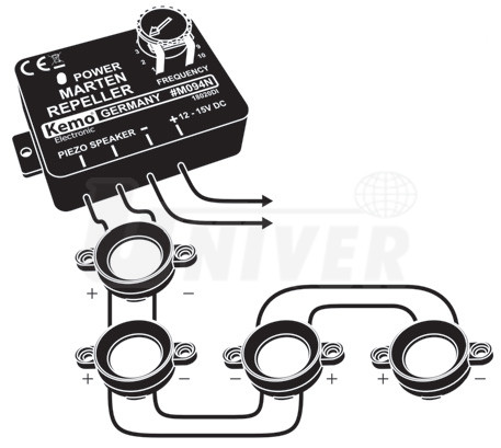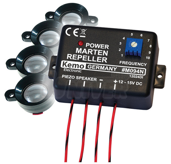 Účinný odpuzovač kun, ptáků, hmyzu a hlodavců se 4 reproduktory vytváří intenzivní pulzující ultrazvukové zvuky, které jsou nesnesitelné pro kuny a hlodavce.Tento odpuzovač sestává ze 4 samostatných malých ultrazvukových reproduktorů k optimálnímu dosažení vyzařování ultrazvukového zvuku. Modul plaší kuny od motorového prostoru, kde tato zvířata často hlodají kabely, polstrování a další plastové díly! Může být použit ve spižírnách, sklepech nebo v podkroví.