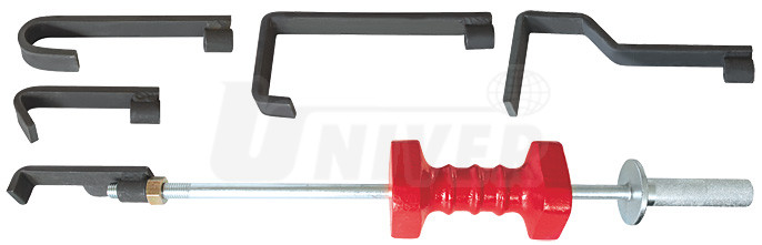Vytahovací kluzné kladivo s příslušenstvím nalézá uplatnění při karosářských rovnacích pracích. Základem sady je extra robustní kluzné vytahovací kladivo o hmotnosti 6 kg. K němu je k dispozici 5 speciálních háků, které se připojují ke koncovce kladiva.Objednávka zboží
