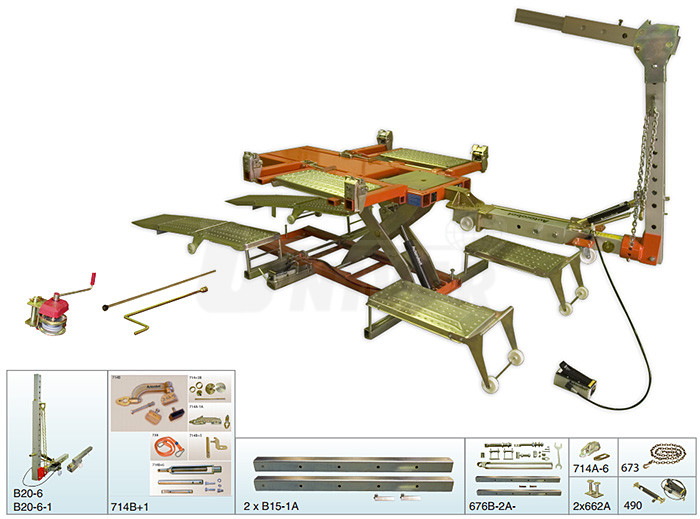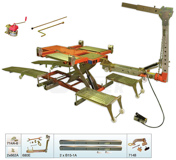 Toto provedení kombinuje rovnací stolici, dozer 10 t, nájezdové plošiny, příslušenství a navíc nůžkový zvedák, který lze použít i univerzálně pro standardní opravárenské práce. I tato zařízení je možné postupně doplňovat a vytvářet tak větší sestavy. To je zejména pro karosárny, které předpokládají narůst činnosti, velmi významné. Velkou předností je rychlá instalace automobilu na stolici, univerzálnost rovnacího dozeru s lehkými rameny ze speciální aluminiové slitiny, vysoká kvalita všech použitých dílů, promyšlený soubor příslušenství a naprostá spolehlivost hydraulických komponentů.