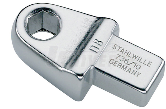 Držáky bitů k momentovým klíčům se zástrčným čtyřhranem podle DIN 3120. Vnitřní šestihran s prstencovou přítlačnou pružinou. Bity se nechají lehce zastrčit, bezpečně se zafixují a bez problémů je lze znovu vytáhnout, také šestihrany s širší drážkou (Form E, DIN 3126/ISO 1173).