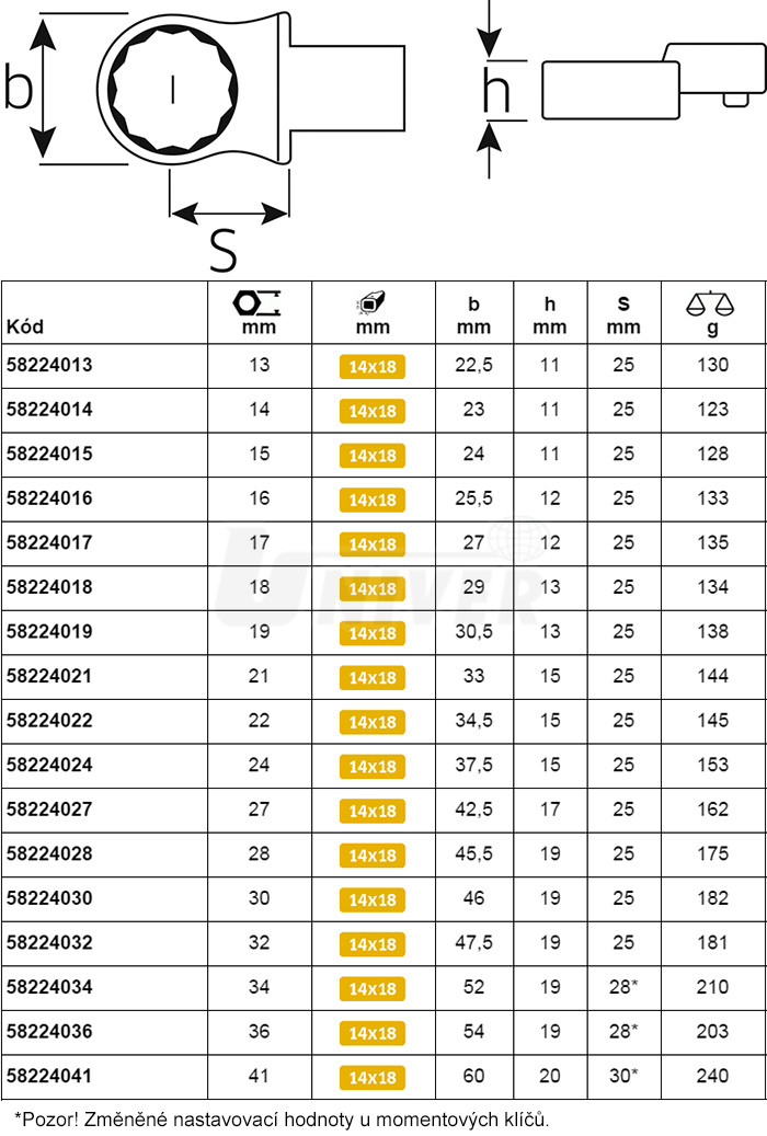 Očkové klíče k momentovým klíčům se zástrčným čtyřhranem podle DIN 3120.