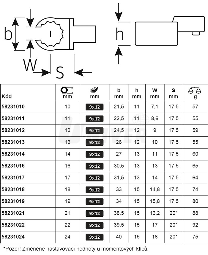 Otevřené očkové klíče k momentovým klíčům se zástrčným čtyřhranem podle DIN 3120.Otevřená očka jsou opatřená profilem AS-Drive, což umožňuje vysoký přenos síly na boky matic a šroubů bez jejich poškození, zakulacení rohů šroubů nepřichází do úvahy.