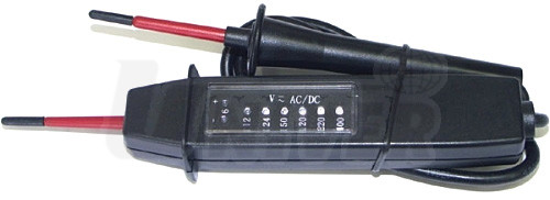 Univerzální zkoušečka střídavého i stejnosměrného napětí 6-400 V sestává z tělesa zkoušečky se zkušebním hrotem a LED-indikací a kabelem s druhým zkušebním hrotem (dl. 80 cm). Při připojení zkušebních hrotů signalizuje rozsvícení příslušných LED-diod efektivní napětí (6/12/24/50/120/220/400 V). Při přerušeném nulovém či ochranném vodiči se nerozsvítí žádná z diod. LED-diody se symboly + a - ukazují při stejnosměrném napětí od 6 V rozsvícením příslušnou polaritu. Maximální dovolená doba připojení zkoušečky činí 30 s.